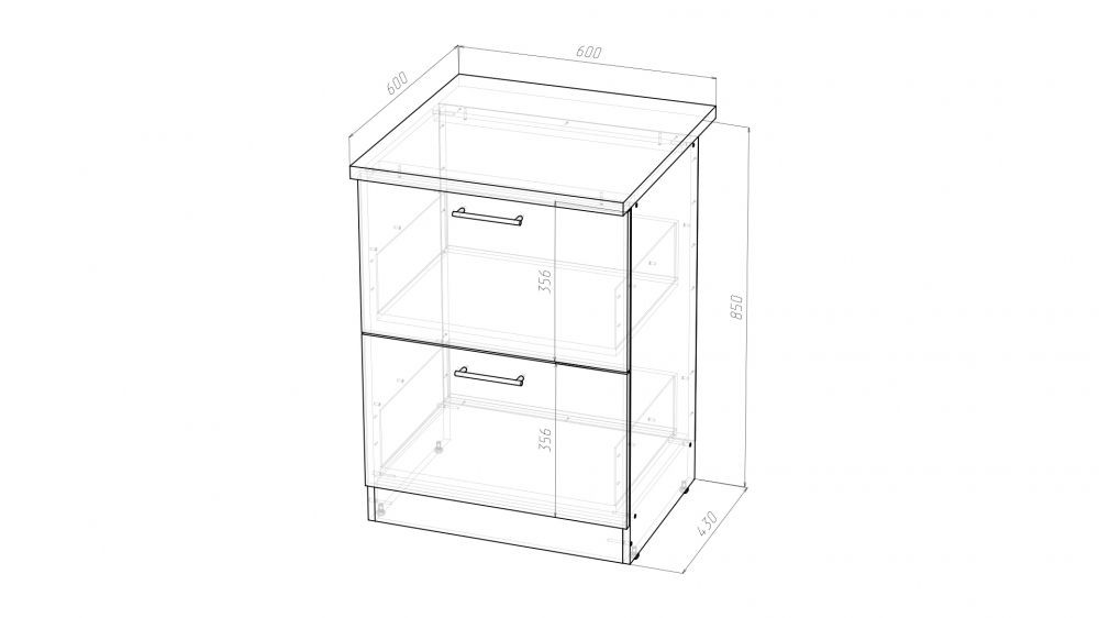 Ширина: 1200 мм; Глубина: 600 мм (со столешницей)