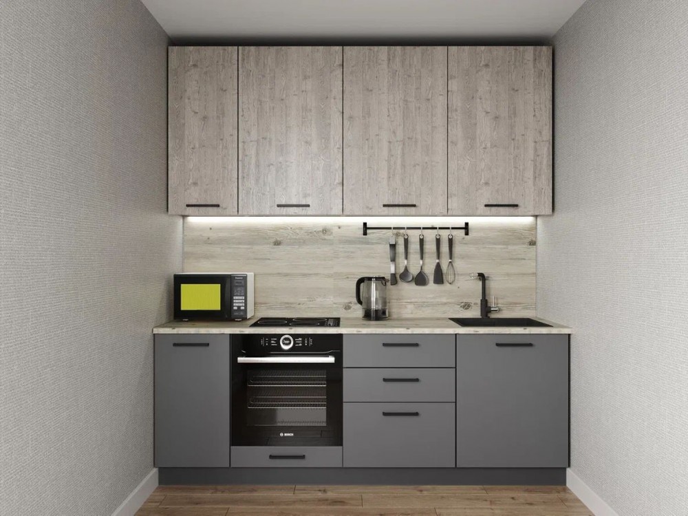 Фасады верхних модулей со свесом 12 мм дают возможность использовать без установки ручек.
