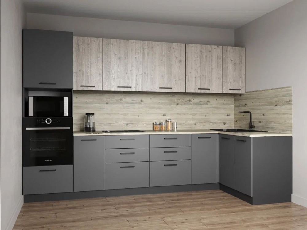 Фасады верхних модулей со свесом 12 мм дают возможность использовать без установки ручек.