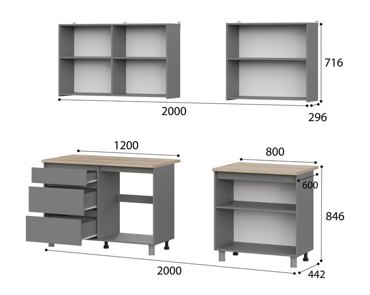Кухонный гарнитур ДЕНВЕР (2000) Графит серый/Дуб Сонома