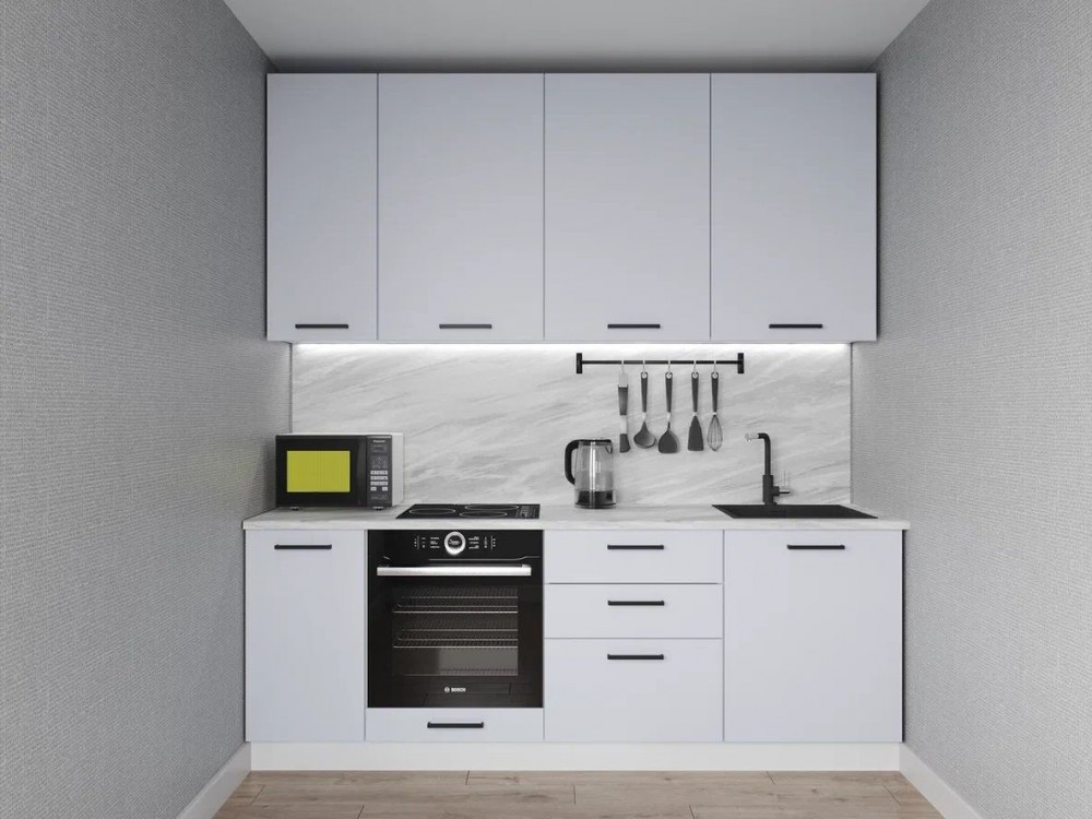 Интернет-магазин "Мебель 24" рад предложить Кухонный гарнитур Смоки 2200 h950 (Стол. 26мм) по привлекательной цене, от производителя САНВУТ.