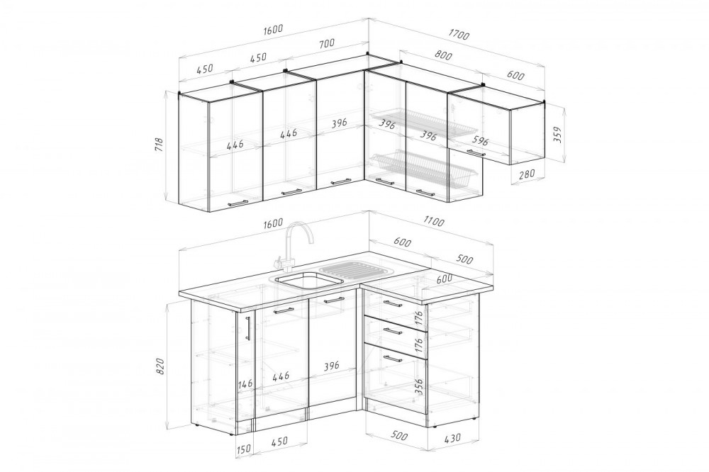 ПАРМА Кухонный гарнитур Мега Прайм (1600*1700 мм)