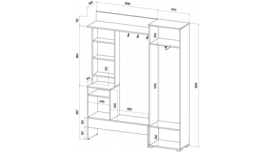 Габаритные размеры Ш*Г*В: 1590*350*2000 мм