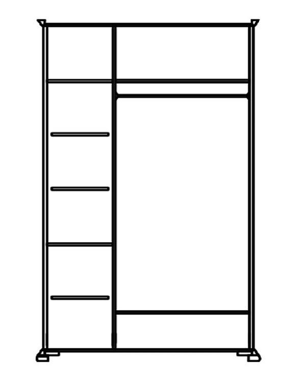 Внутренняя часть: левая дверь - 5 полок для хранения вещей, справа - штанга и полка над ней.