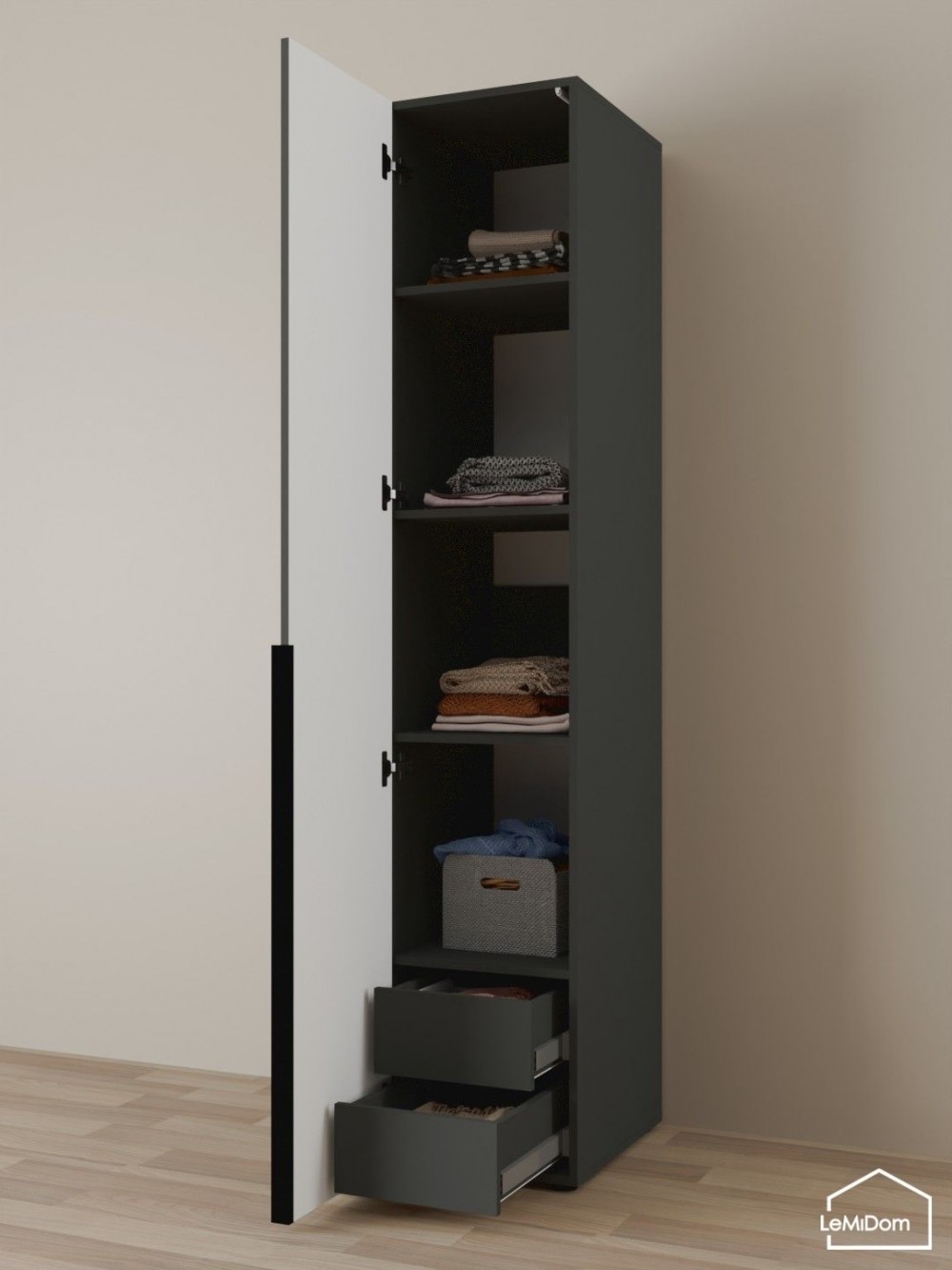 Интернет-магазин "Мебель 24" рад предложить Шкаф Linnea MHR-1-4 2050х400х510 (Графит-М 11.1.25) по привлекательной цене, от производителя LeMiDom.