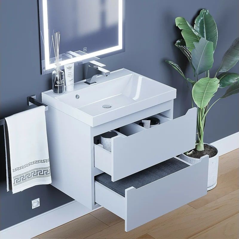 Тумба под раковину Uperwood Tanos 60 см, подвесная, белая матовая