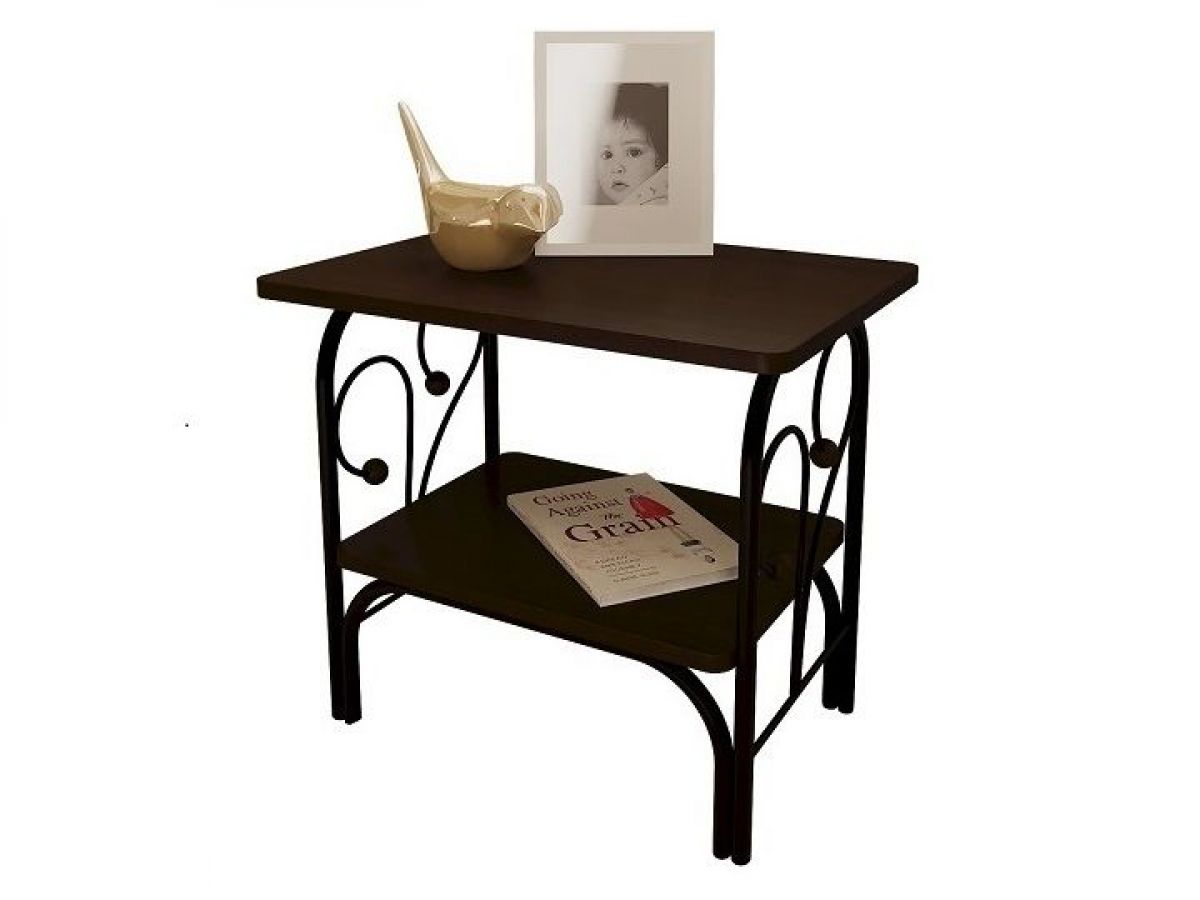 Тумба прикроватная "Версаль" с коваными элементами, черная (полки-венге)